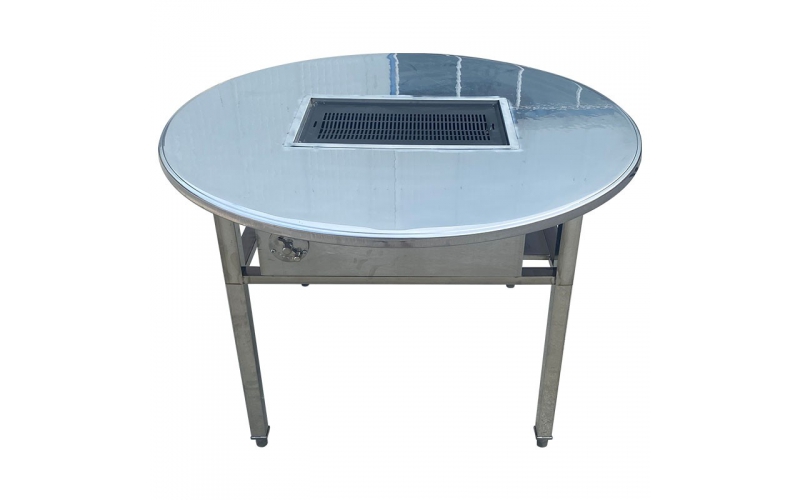 燒烤桌商用戶外庭院烤肉無煙不銹鋼木炭圓桌擺攤室內家用羊腿桌子