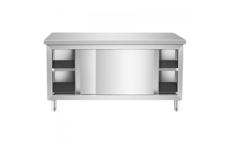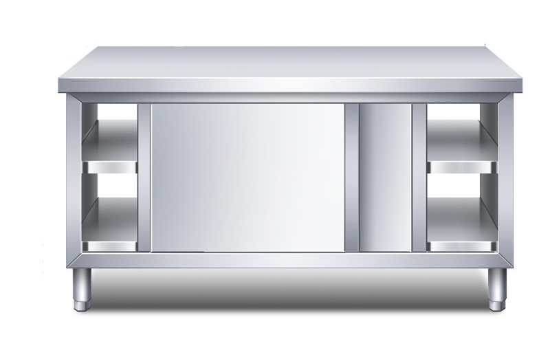不銹鋼家用拉門工作臺廚房桌打荷操作臺儲物柜桌子帶拉門案板