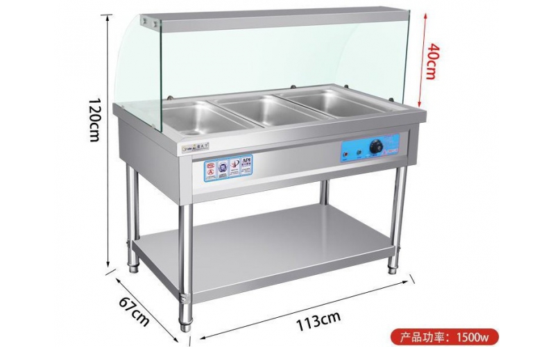 全鋼豪華帶玻璃罩多格拉門保溫售飯臺售飯車快餐車保溫儲物柜定做