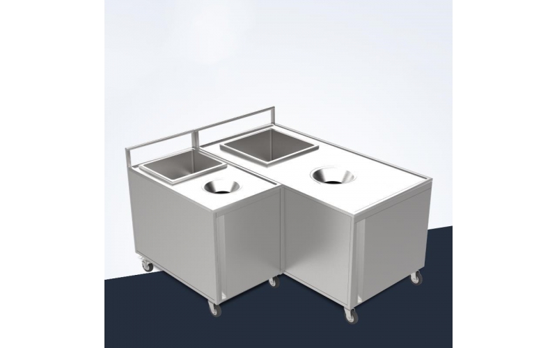 雙孔泔水不銹鋼收殘車收餐車兩用推車食堂收盤車殘w食柜服務車廚
