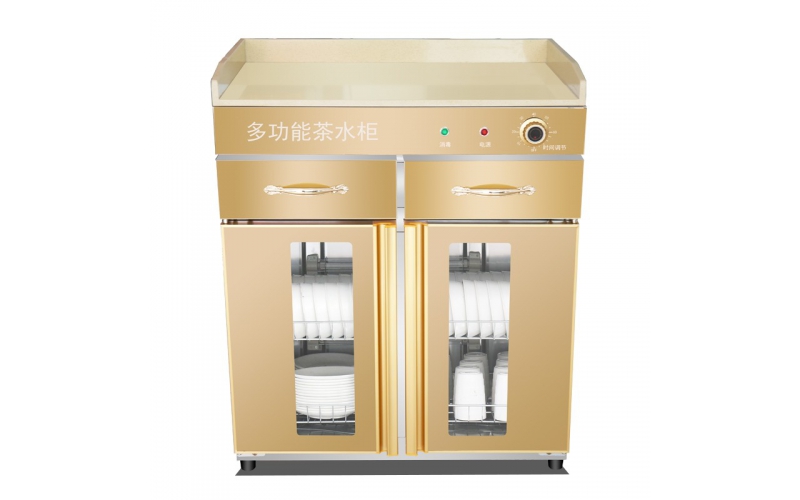 茶水消毒柜商用立式雙門保潔柜大理石臺面配餐消毒碗柜